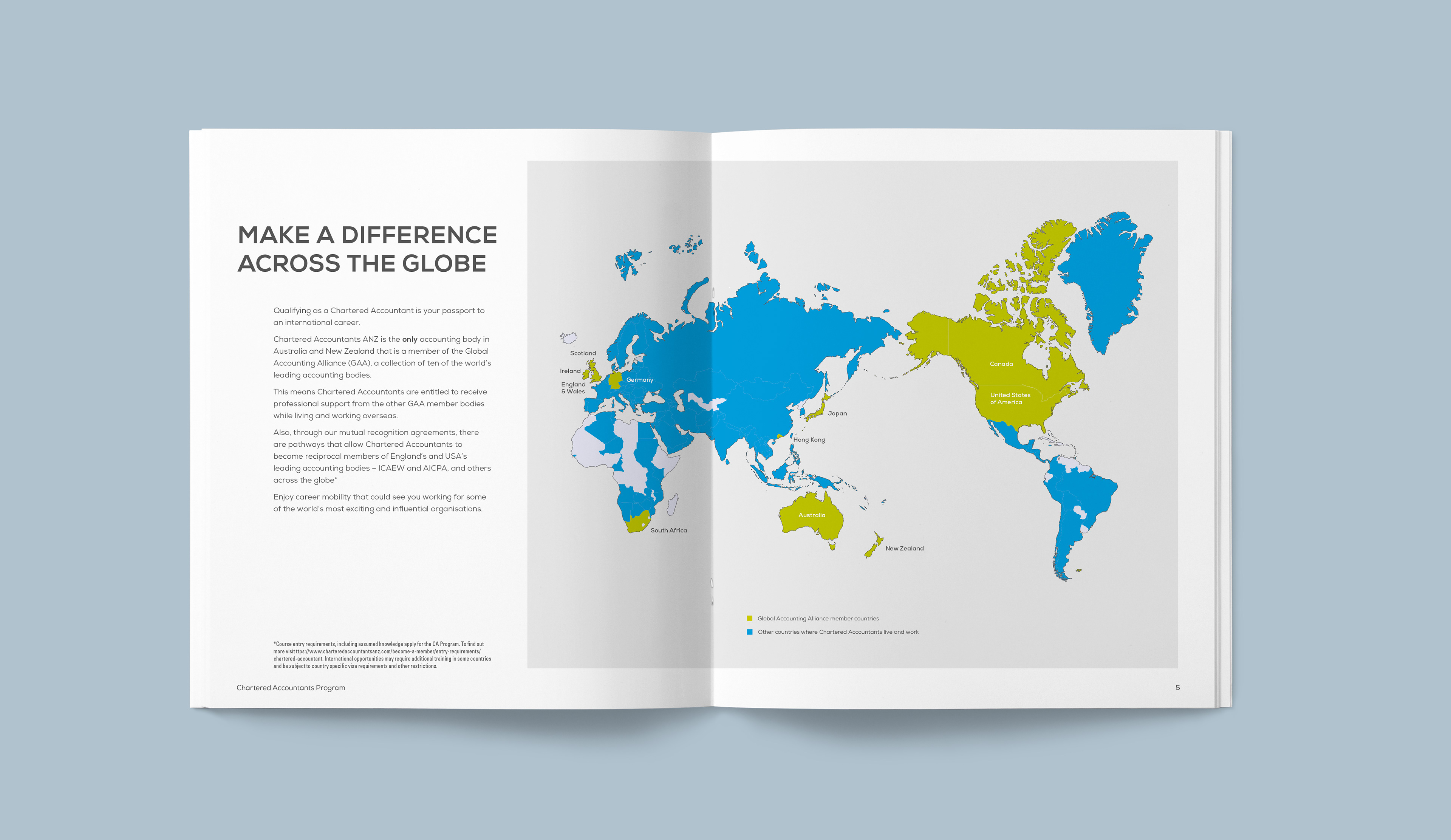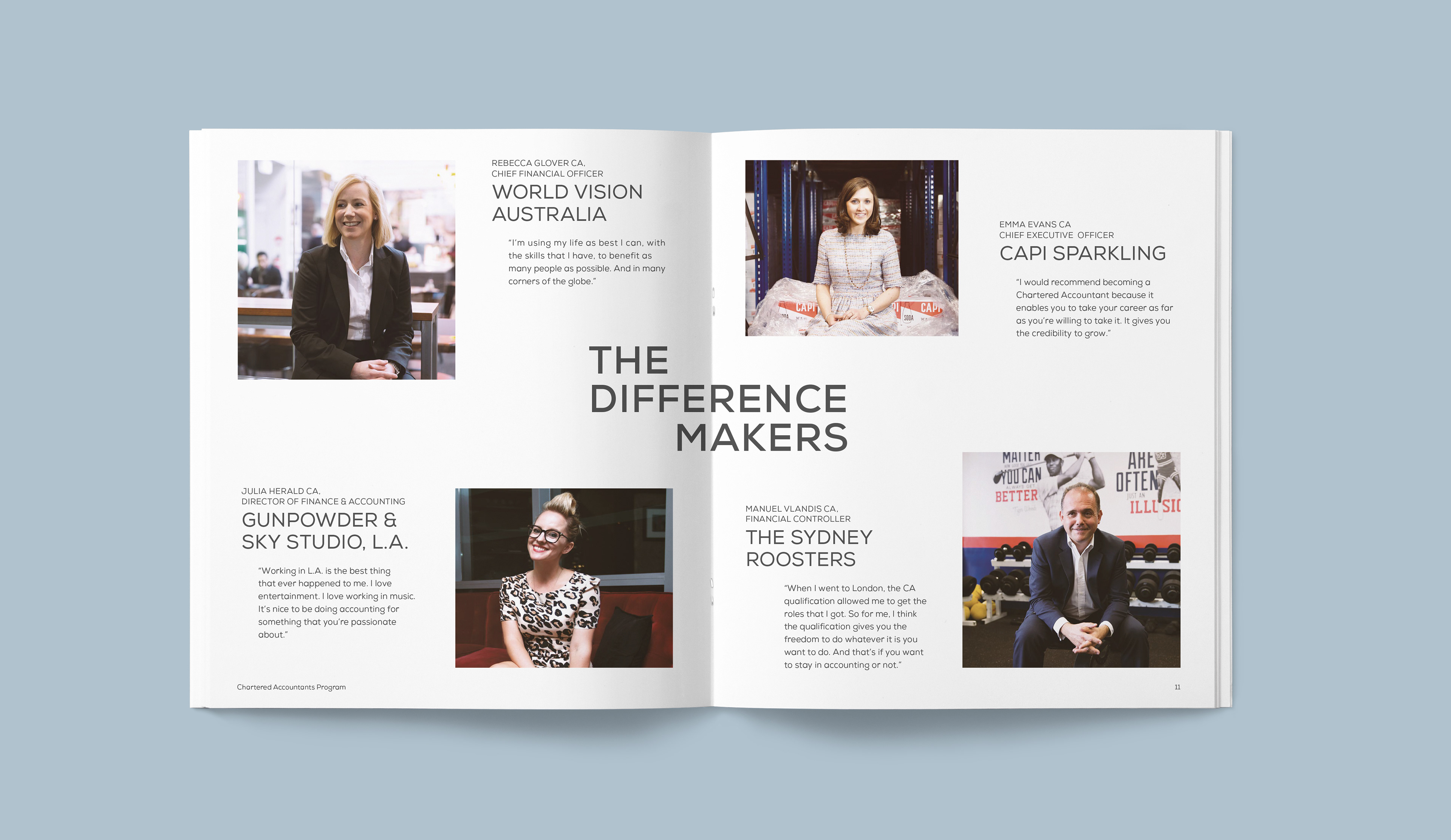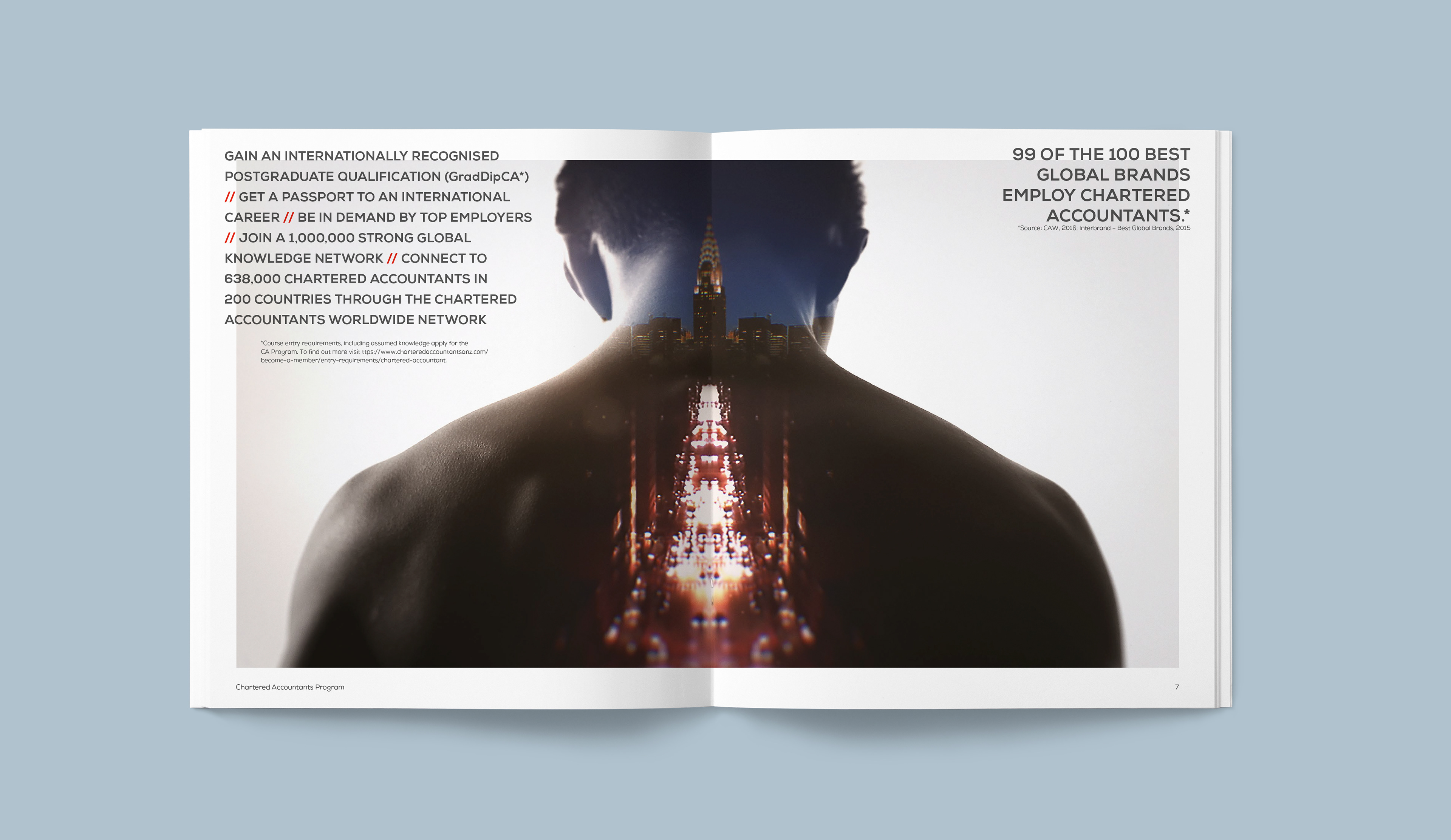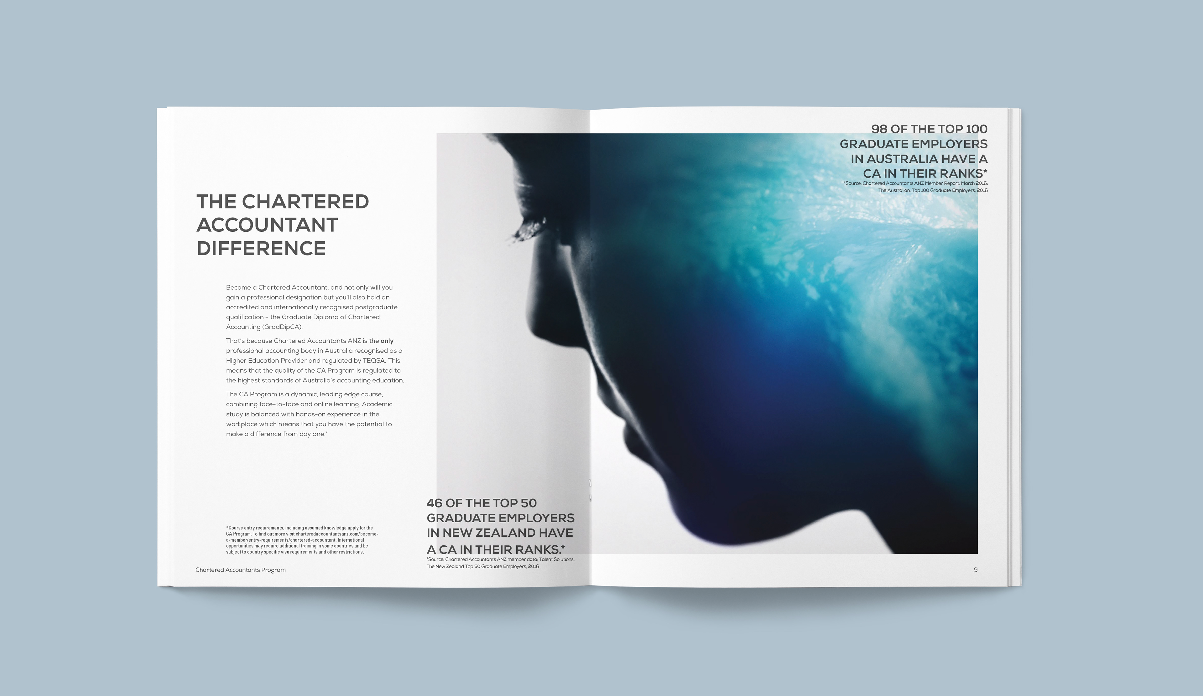 Design and layout of a promotional brochure for university graduates to encourage them to enrol in the CA Program.
