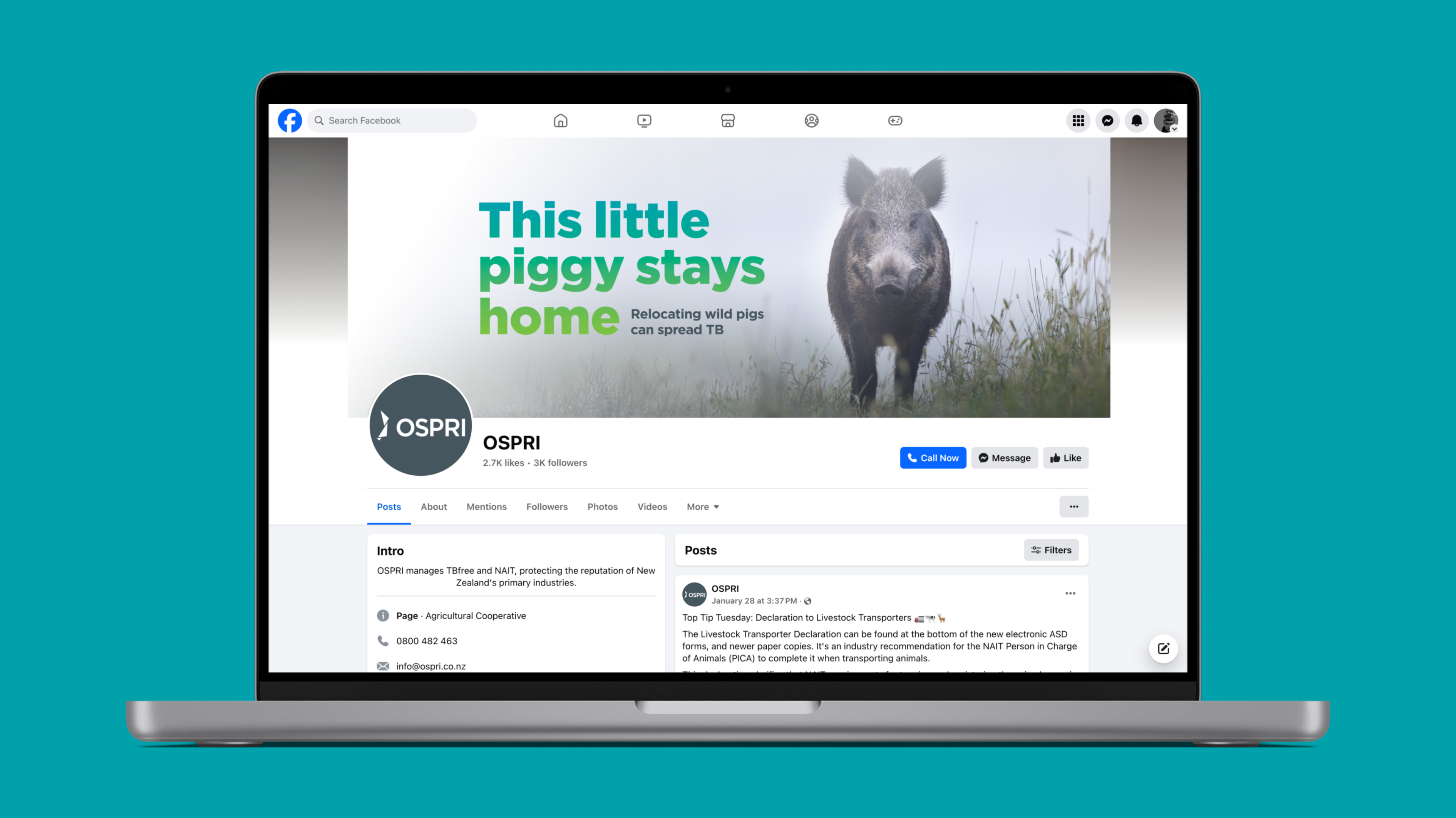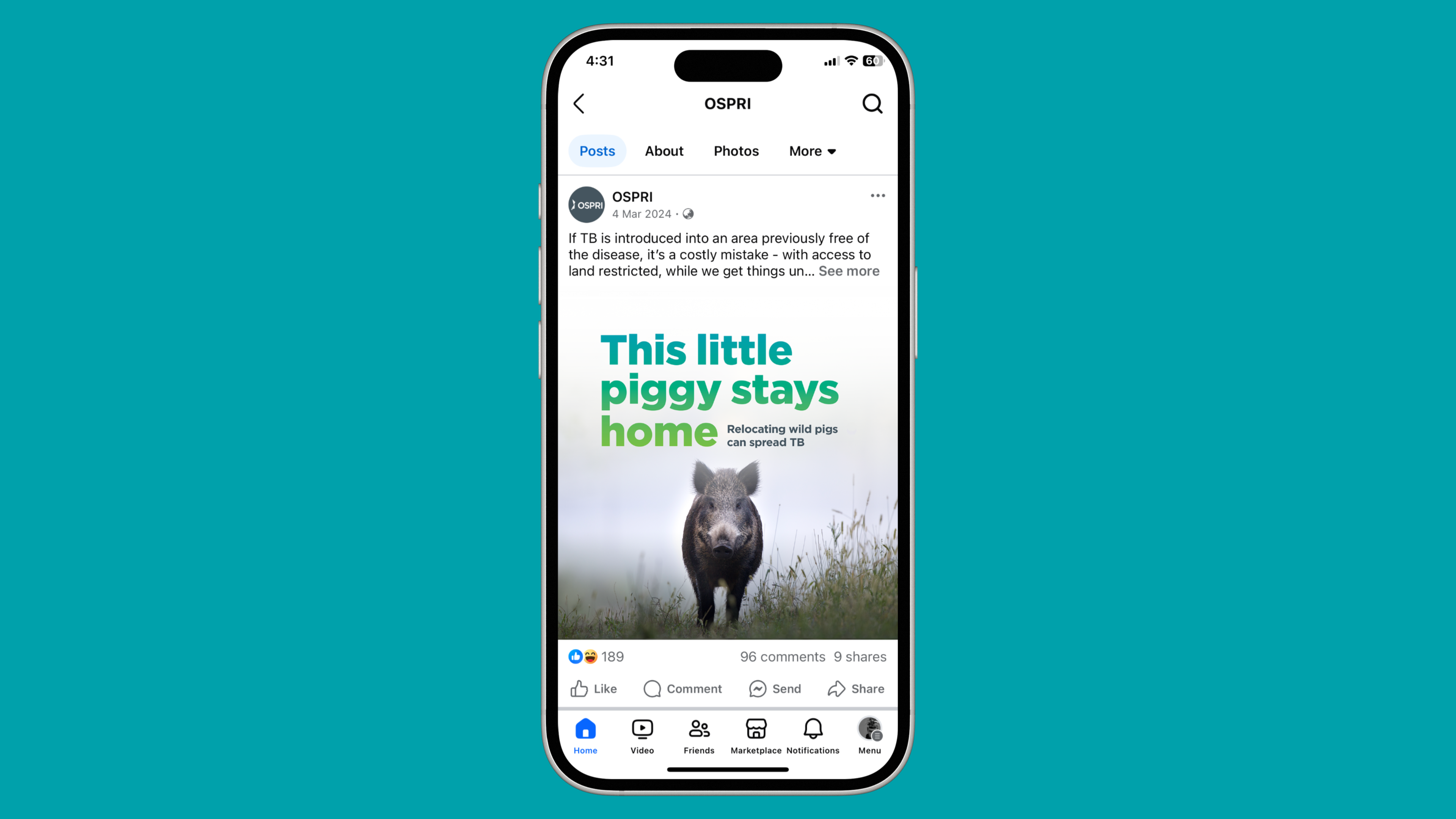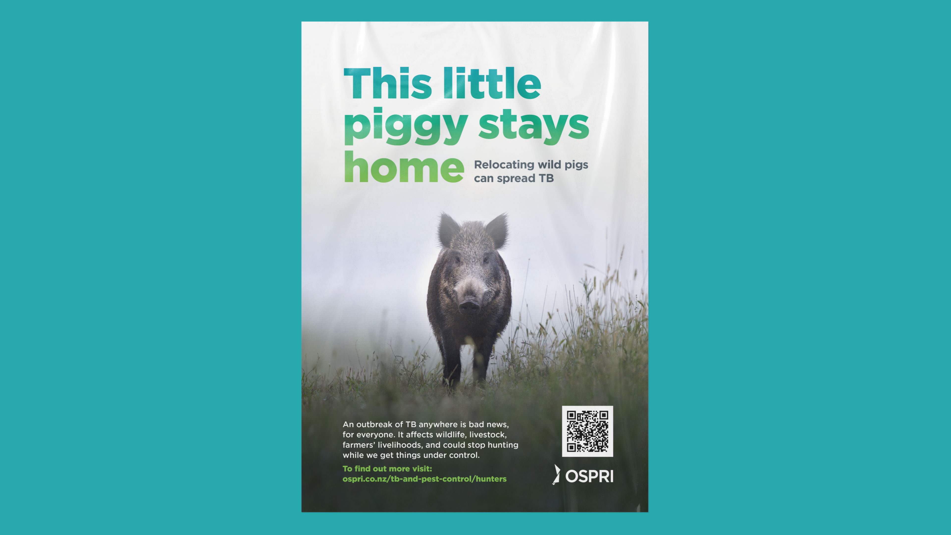 Campaign to educate hunters about the risks of spreading TB when relocating wild pigs.