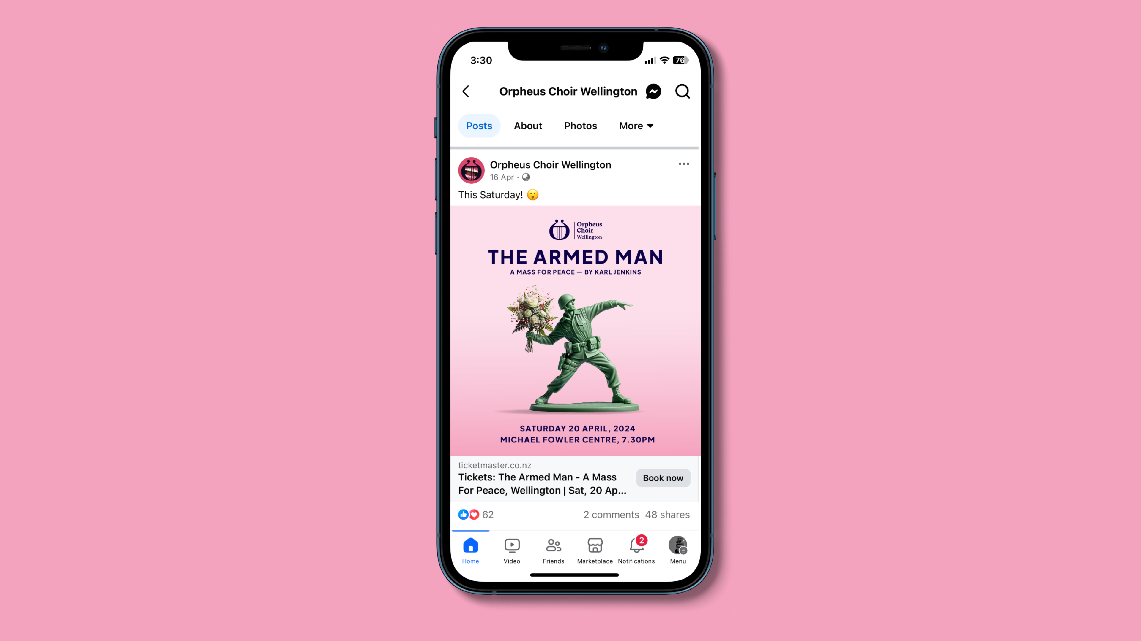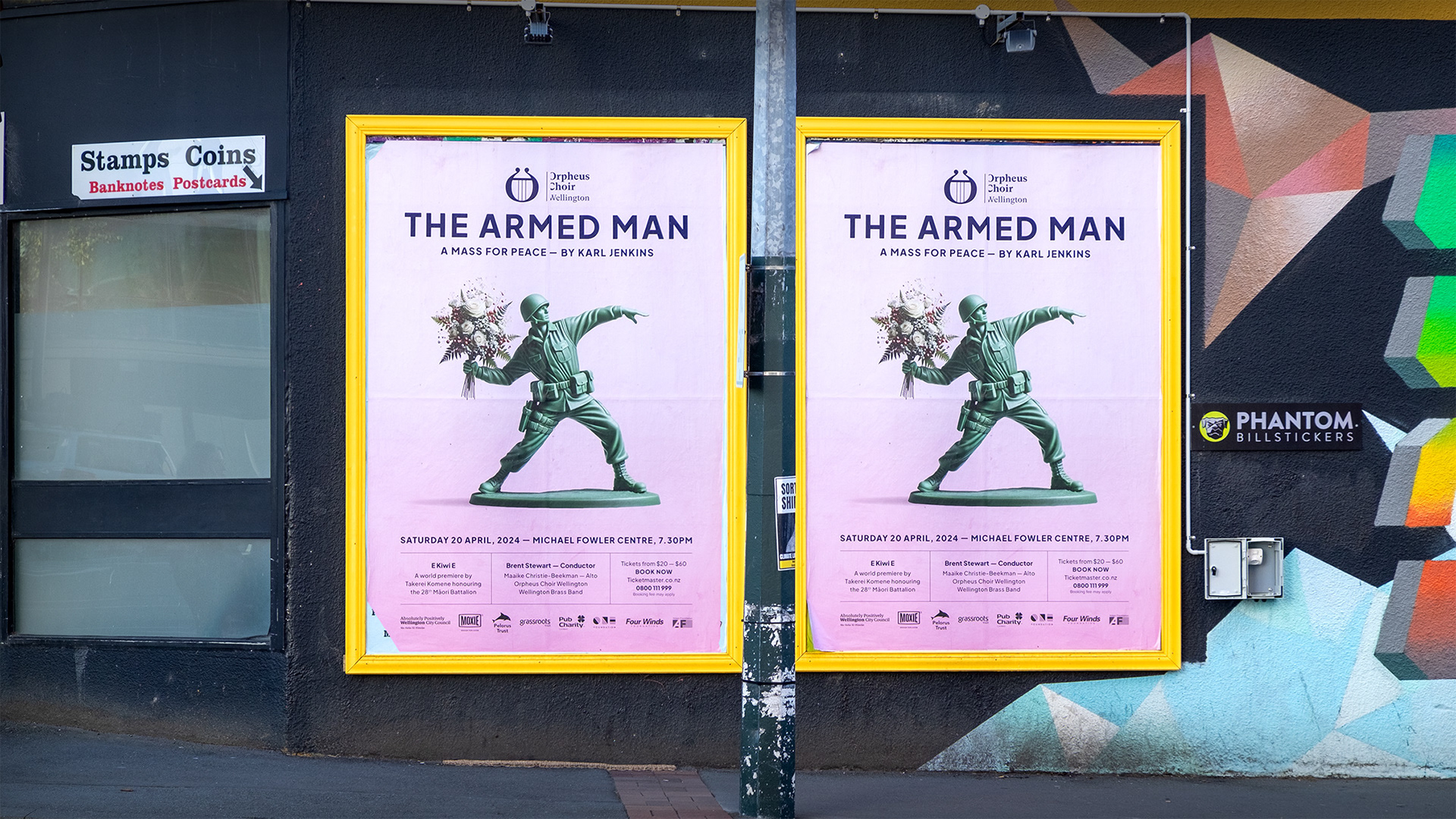 Campaign for the Orpheus Choir Wellington to promote their performance of The Armed Man by Paul Jenkins.
